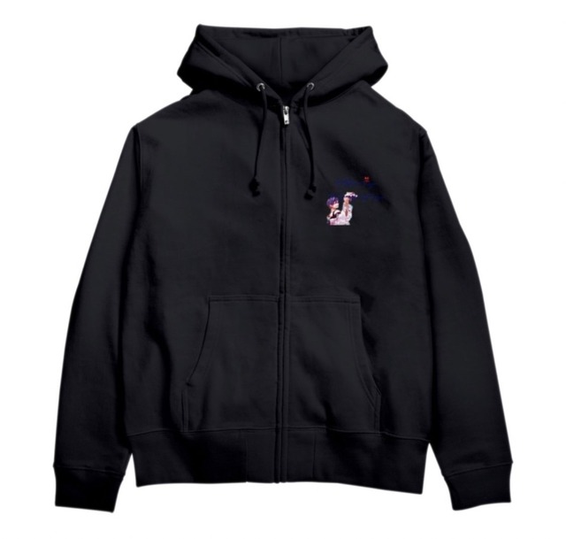 もるもつオリジナルキャラクターのジップアップパーカー ブラック