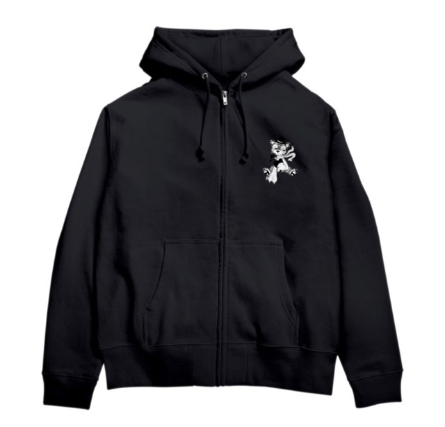 けーごのオリジナルくまキャラクターのジップアップパーカー ブラック